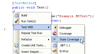 MILY: 宋体">在做单元测试的时候,我们总是希望知道自己的代码有多少覆盖到了,哪些代码是没有测试到的,如果没有安装Visual Studio Team System,无法用Team Converage进行代码覆盖率的分析,这时使用大名鼎鼎的NConver是一个不错的选择,并且使用NconverExplorer可以去查看分析结果,所有这些仍然需要运行新的应用程序,TestDriven.NET 2.0把这一切都集成到了IDE中,可以在没有安装Team System的环境下使用Team Converage,也不用单独安装NConver。