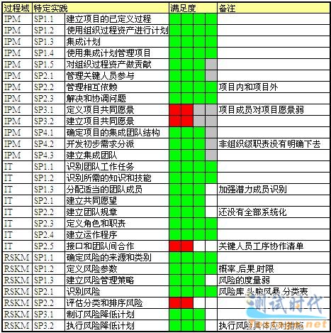 现在先列出项目的自我简单评估情况,主要列出项目经理关注的过程域: