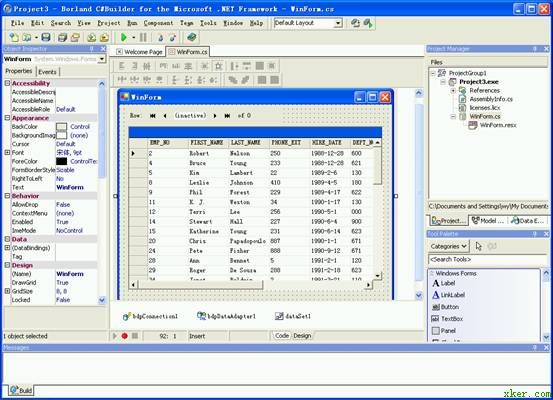 2 设计视图,可以看到在设计期显示的数据库内容,右下角是组件窗口