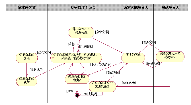 3. 决定团队各个角色在流程实施中所起的作用:通常情况下,在团队中有变更请求提交者、CCB、请求解决方案实施者、测试人员及QA等;