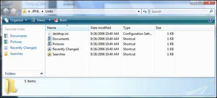 定制该菜单的另一个方式就是,将所需要的选项拖到资源管理器的链接面板上,但是却无法直接从视图中直接删除它们,因此,知道这些位于你系统的什么位置显得尤为重要。