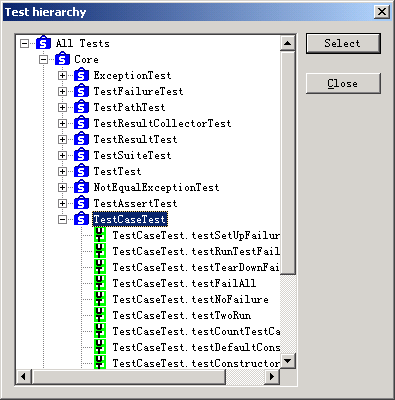 CppUnit将所有的单元测试按照树的结构来表示。在CppUnit中,最小的测试单元,称为TestMethod测试方法,而多个相关的测试方法又可以组成一个TestCase测试用例。多个测试用例又组成TestSuite测试包。测试包互相嵌套在一起,就形成了上面我们看到的树结构。我们可以选择其中任意的树节点来进行单元测试。