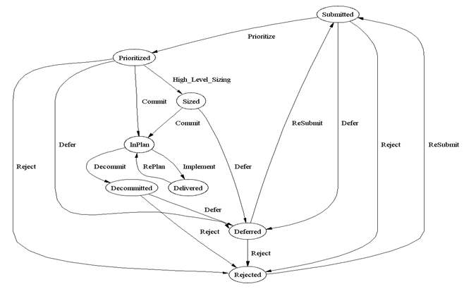 被拒绝,即现在没有任何实现的时间表; 被延迟,将在下次版本的概念阶段被重新考虑; 需要添加负责人和注释以备查。IPD计划阶段