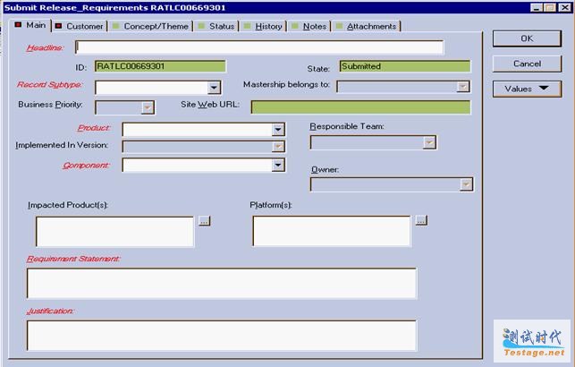 图五是通过ClearQuest Designer表单定制功能定制出来的RATLC需求录入界面。