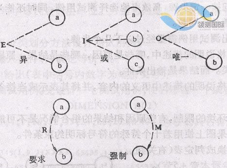 输入状态相互之间还可能存在某些依赖关系,称为约束。例如, 某些输入条件本身不可能同时出现。输出状态之间也往往存在约束。在因果图中,用特定的符号标明这些约束。
