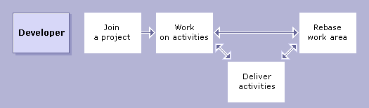 从开发者的角度来看,UCM 流程的一个优势是:基本 ClearCase 的许多机制是隐藏的或抽象的。使用 ClearCase UCM,您能将重点放在按照项目的日程安排交付一组预先定义的、非常具体的活动上,而不是放在诸如处理版本问题、底层项目分支结构、低级 SCM 操作以及平行开发这些复杂问题上。使用 UCM,您只需关注对实际项目操作的抽象:加入项目、执行开发活动、交付已完成的活动以及重设工作区基线: