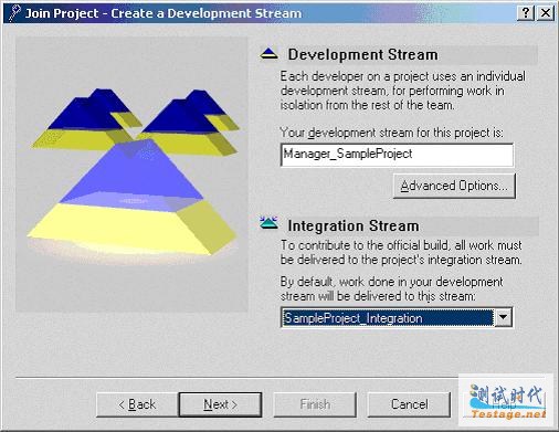 Join Project 向导还让您提供要创建的开发流对象的名称,并让您指定集成流(您将把完成的活动交付给这个集成流):