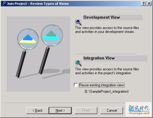 下面的图 6 和图 7 显示 Join Project 向导如何让您选择应该在文件系统上的什么地方创建开发者视图对象和集成视图对象。ClearCase LT 服务器提供一个快照视图,而完整版 ClearCase 既提供快照视图又提供动态视图。使用快照视图,可以将源代码抽取到您本地工作站的文件系统上。另一方面,使用动态视图时,不会抽取任何源代码,而是把 ClearCase 服务器(您的专用流就在该服务器上)的网络连接映射到本地。因此动态视图要求 ClearCase 服务器要有固定的网络连接,并且通常与快照视图一起使用。