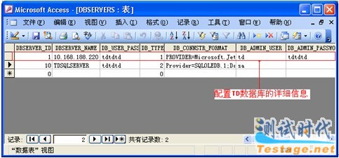 a.DBSERVER表中主要修改DBSERVER_NAME(目标数据库服务器的IP如本例为10.168.188.151)、DB_USER_PASS(用户密码如tdtdtd)、DB_ADMIN_USER(管理用户名如td)和DB_ADMIN_PASSWORD(管理用户密码如tdtdtd)字段的值,如下图:![]() |