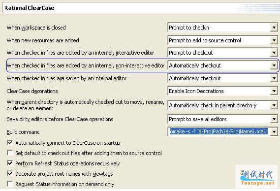 图 6. 向项目中加入新的资源时 ClearCase 首选项的设置。