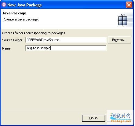 在下图 8 中,包 org.test.sample 被加入 J2EEWeb 项目的源代码文件夹中: