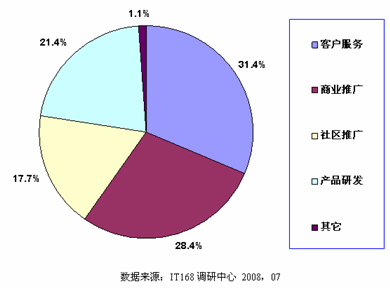 开源爱好者们认为利用开源来进行商业化要想获得成功,最重要的的是要加强客户服务(占31.4%)、商业推广(占28.4%)和产品研发(占21.4%)。从上面的结论上,我们可以看到开源要进入商业化——也必须遵循商业软件的