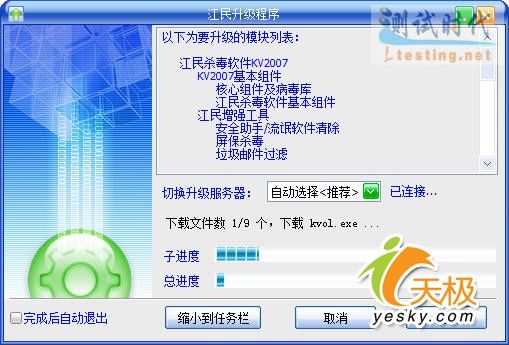 在Vista系统下的下载与更新病毒库过程也较为顺利,只是在最后的文件更新时有些缓慢,不过这不影响整个升级的进程。