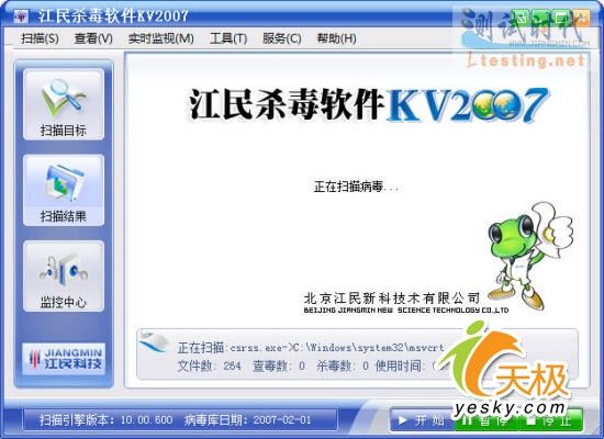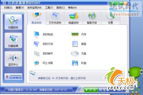 江民2007版杀毒软件推出了专门的Vista版,因此其在Vista系统下的安装一切正常;只可惜其主界面并未能与Vista融为一体。