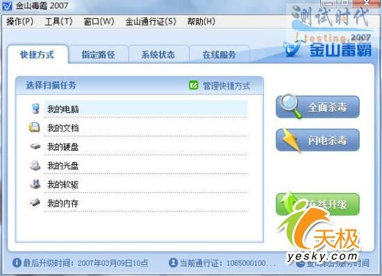 三、金山毒霸2007运行测试