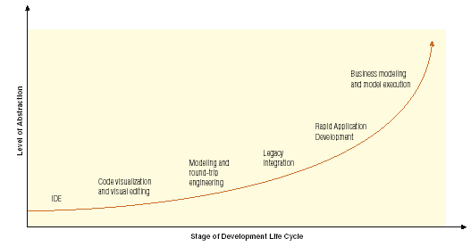 在建模的最自由的概念中,集成开发环境(IDE)可以看作是模型驱动开发实践的入口点。现在的集成开发环境在创建和维护代码方面提供了许多提高抽象层次方面的机制。有许多工具,例如,诸如语言敏感的编辑器、导航器、表单生成器和其他GUI控制,在更严格的术语上讲都不算是模型。但是,它们能够提高源代码之上的抽象层次,提高开发人员的生产率,帮助创建更可靠的代码,以及提供更高效的维护过程。所有的这些属性都是模型驱动开发的本质。