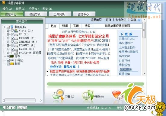 具体的测试操作,由于考虑到Vista系统本身的特点,因此整个测试主要从各款杀毒软件的安装与界面、系统扫描速度、系统资源占用、安全配置以及升级维护六大方面进行综合评测。并在测试完成后有综合对比数据。