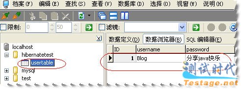这里,HibernateTest与hibernate.cfg.xml配置文件中的HibernateTest相对应,UserTable与hbm映射文件中的UserTable相对应。