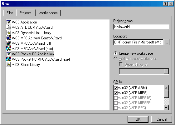 您会看到下列对话框 — 或类似的东西 — 取决于您安装的 SDK。对话框列出了所有可能的不同程序类型,向导知道如何帮助您。