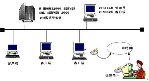 通用考试系统适合政府、行业及企业的各专业网上考试、作业、练习、培训管理等应用。 通用考试系统还有专为学校设计的版本,能提供基于网络教室、校园网及Internet的网上考试、测验等,特别是教师网上布置练习和批改作业、学生回家通过Internet完成作业和查询成绩和教师批语等。 通用考试系统WebExam基于SQL Server数据库平台,能够容纳大量的专业知识题库,为客户端提供更快和更稳定的运行环境。面向众多考生的应用模块采用Web方式构建,无需安装客户端,便于使用、维护和升级,并能够与企业现有的Intranet无缝集成。面向管理员的题库管理和出卷系统采用C/S模式,从而在不增加维护成本的前提下提供更高的安全性、稳定性和高效性。 WebExam Web模块:B/S模式,无需安装客户端,允许考生通过IE浏览器登录系统,参加考试、作业、练习,并进行个人成绩查询;也允许指定的管理者通过IE浏览器进行总成绩查询统计、考试结果分析、知识点分析和手工评卷等。 WebExam管理模块:C/S模式,需要安装客户端,只有系统管理员SA才能登录,能够批量管理账户和试题库,定义各种试卷、考场管理和修改成绩等。 1. 可扩展的集团多机构管理模型 l 独家提供独立的下属机构管理,更符合行业和大企业考试管理模式 l 与其他系统不同,下属机构完全管理独立、使用独立、数据独立,类似购买多套单独产品使用,与总部及其他机构相互不影响。 l 总部可以对下属机构的所有对象和数据进行管理,并可针对下属机构进行综合查询和统计分析 l 总部创建的题库可以共享给下属使用,下属机构创建的知识库可以导入和导出给总部采用。 2. 批量数据导入和导出技术 l 账户Excel批量导入和导出:WebExam的账户可以通过Excel表格导入,很容易将人事系统中的账户信息转入到考试系统中。同时提供帐户Excel批量导出。 l 试题Excel批量导入和导出:试题可以通过“Excel题库编辑模板”批量导入,这样管理员可以分发Excel模板给多人,同时录入试题。试题同时可以导出到Excel,方便题库的保存、迁移和分发。 l 试题Word批量导入导出:独家提供将Word试卷的题目导入到WebExam题库的功能。更重要的是,解决了Word中的试题图片也可以同时导入题库的难题,这样用户可以以其最熟悉的Word文档来编辑试题或试卷。 l 试题加密文件批量导入和导出:独家提供将题库导出成Access加密文件,或从文件中导入,用于题库备份,或大企业在下属机构之间分发和共享题库。 l 试卷加密导入和导出:考试试卷可以通过Excel、Word、Access等文件导入和导出快速生成,即使没有题库支持,也可以开展考试。 l 考试成绩和答卷批量导入和导出:独家提供将一场考试的所有成绩和答卷导入到加密后的Access文件中,并同时支持反向导出。可用于大企业分机构考试,并通过该技术将考试成绩和答卷汇总到一起进行统计分析。 3. 更可靠的考试引擎技术 l 可靠性高:自动手工保存技术、离线答题技术、考试页面缓存技术、XML容错交卷,出错返回技术,能够在服务器故障、网络故障及本地计算机故障等情况下,确保考试成功。 l 性能优异,实现“北大青鸟Aptech ”每服务器2000人同时考试的压力测试 l 安全性好,经过“中国外交部一局”全方位测试 4. 更完善的考试防舞弊功能 l 特殊的“考试页面控制”防舞弊技术,能够控制考生考试的页面,禁止考试页面外的任何操作。 l 能够防止远程控制、QQ(MSN)等即时联络、网络通讯传递试题 l 能够防止试题复制、拷贝屏幕等试题泄漏。 l 随机出题技术、打乱试题顺序技术、打乱选择题候选项顺序技术等等,能够防止互相抄袭。 5. 灵活的随机出题策略功能 l 独家提供可以设置题库集、题库、知识点、难度、题型等条件和满足条件的题目数量,定义最灵活的出卷策略,保证可以出一套让管理员满意的试卷。 l 设置条件后,可以即时显示符合条件的题目数量,允许设定无数出卷策略。 l 提供按题型设定分数和按题库分数折算为100分两种分数设置模型。 l 独家提供在试卷中定义题型排列顺序,考试页面中按指定题型顺序出题。 6. 可筛选的统计分析功能 l 更全面的统计分析系统,全面分析考生成绩、题库知识点等各种数据,更多的图表分析。 l 多种条件筛选方式,将查询和统计融为一体,让统计结果更加多样 l 查询和统计结果可以打印和Excel输出。 7. 面向对象的授权管理机制 l 提供系统管理员-机构管理员-用户三种管理角色,提供管理员-领导查询-考生三种考试使用和查询角色。 l WebExam可以细化到针对所有对象授权,每一场考试每一场作业都可以授权。权限角色包括:管理者、查询者和使用者。对象包括:机构、账户、题库集、题库、考试作业和练习试卷、系统管理权限等。 l 独家提供“总部领导”和“机构领导”角色,领导默认可以对本机构的所有数据进行查询统计和分析。 1、B/S模式和C/S模式的组合,易用性和稳定性的结合 更安全高效的C/S模式:管理员对考生、题库和试卷的管理模块采用传统的C/S模式构建。由于管理员较少,所以安装客户端不会带来不便,而会更加性能稳定且效率高 简单易用的B/S模式:考生考试及查分、教师改卷、领导查询等采用B/S模式开发,无需安装客户端便于维护和升级,并能够与企业现有的Intranet集成。 题库和考试的分布式管理:允许机构管理员管理题库,允许指定题库的保密和共享,允许机构管理员