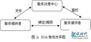 在SOA服务模型图(图2)中面向服务的体系结构中主要有三种角色: