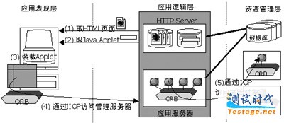 ② 用户通过该主页从HTTP服务器上下载访问应用对象的Java Applet;