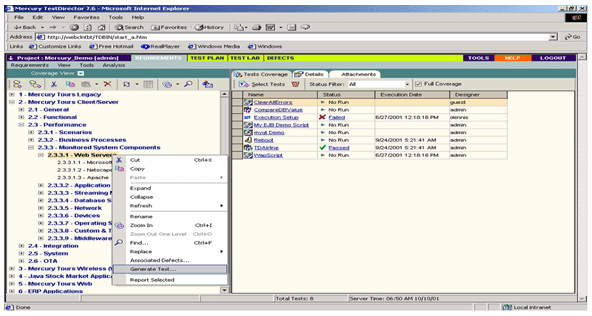 程序的需求驱动整个测试过程。TestDirector的Web界面简化了这些需求管理过程,以此您可以验证应用软件的每一个特征都功能正常。TestDirector的需求管理可以让测试人员根据应用需求自动生成测试用例。通过提供一个直观机制将需求和测试用例、测试结果和报告的错误联系起来,从而确保完全的测试覆盖率。