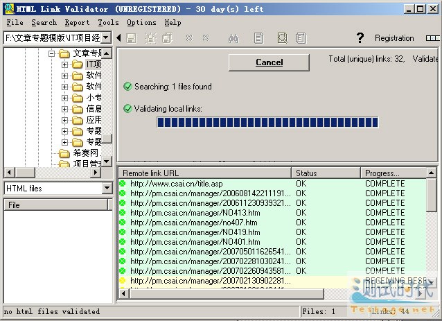 +”号图标,因为在Web Link Validat双击有特殊的用途。默认情况下,双击HTML文件则对该文件中的所有链接进行链接测试,双击目录则对该目录和所有