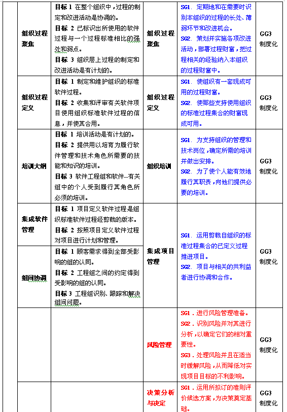 SJ/T11235模型3级共有18(其中2级7个,3级11个)个过程域,相对应,SW-CMM共有18个过程域。虽然SJ/T11235中的很多过程域与SW-CMM中的基本相同,但有几个过程域的范围和内容发生了重要的变化,另外也有几个新增加的过程域。两个模型2、3级的过程域比较见表2。