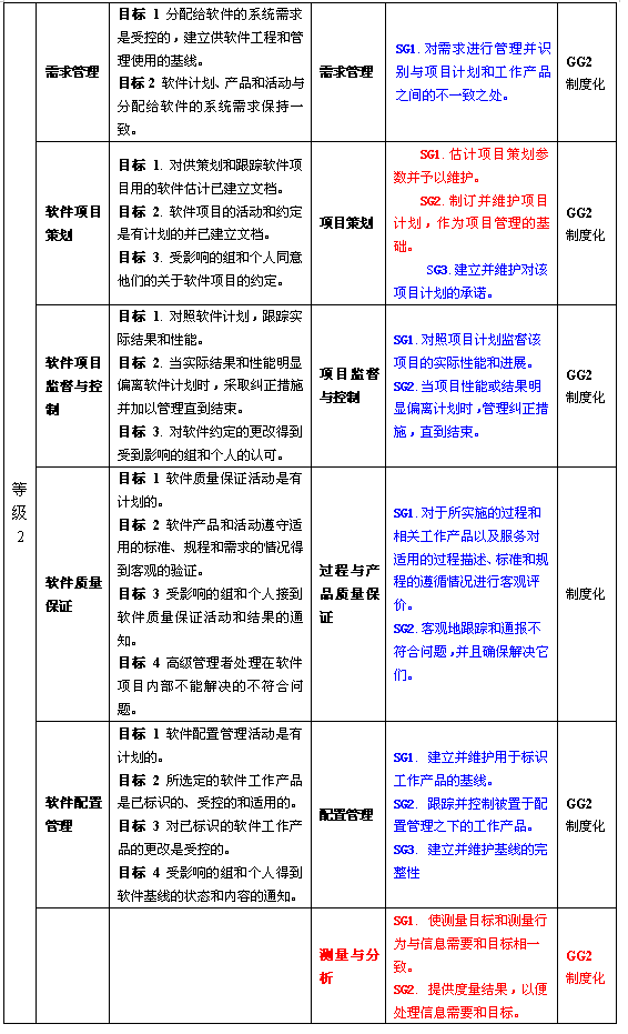 通过比较可以看出,2级的内容变化不大。"软件分包管理"重新命名为"供应协议管理",所包括的范围也更广泛,包含了供应和采购方面的一些内容,所以不应裁减。"度量与分析"在SW-CMM中是一个公共特性,在CMMI中成为一个单独的过程域。