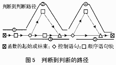 在DeltaCORE的测试中,我们采用了较为常用的覆盖策略——判断到判断的路径,其含义是:DDP是一个指令序列,它的起点是函数或判断(if,while,……)的入口点,它的出口是下一个函数或判断的退出点,之间不能再有判断,比如在图5中包含了5个DDPs: