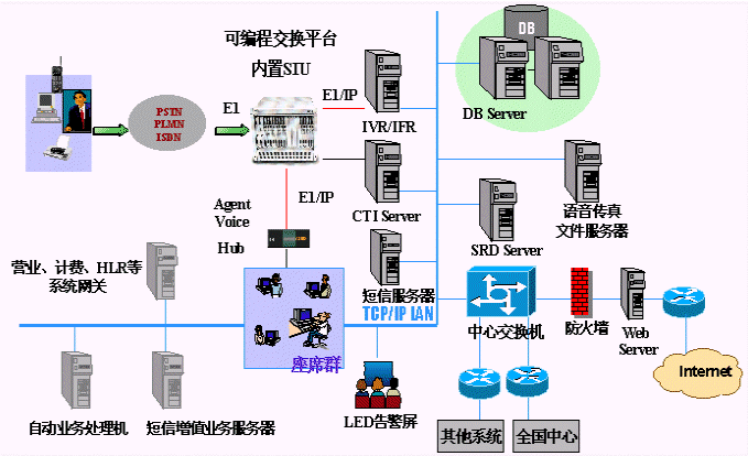 - 灵活开放的呼叫中心平台,便于加挂各种基本业务及增值业务;