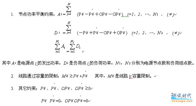 2. 约束条件:考虑线路过负荷约束和潮流方程约束。