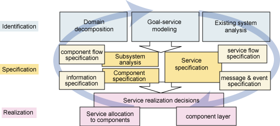 基于服务的建模和架构过程包含三个主要的步骤:服务,组件和流程(典型地,服务的编排)的鉴别,指定和实现。
