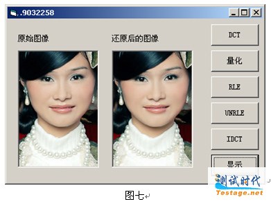 要解决这个问题,只需要检查经过IDCT还原后的数据,如果数据小于0,则让它等于0,如果大于255则让它等于255,经过这样的处理后,还原的图像上就变得很干净,效果如图七所示。
