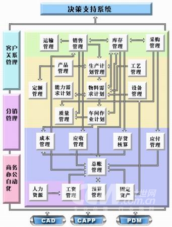 企业上游的供应商,下游的分销商、客户,以及合作伙伴等资源和能力的集成。和佳ERP系统深入到工序、设备级管理和模块的灵活性,支持业务流程重组和企业不断发展的需求,在实践过程中不断吸收各行业管理特色,通过建制完备的行业方案知识库,能够快速地在和佳标准化ERP的基础上进行客户化定制。其模块图如下: