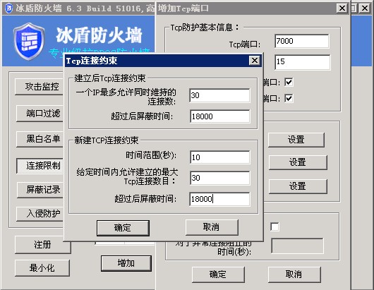 1、点左侧“连接限制”按钮,再点击“增加”按钮。