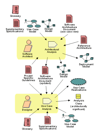 在RUP方法中,这个需求文档是后续的分析和设计工作的起点。不同的开发方式,对项目的推动力是不同的,也就会产生不同的文档。如果软件发布之后,你还总是在不停的修补缺陷,你很可能根本没有需求文档。只能从Bug报告中看出,软件已经和最开始设计的样子不一样了。如果你在维护或者改进一个软件版本(比如增加一项新功能),你可能有一两个用例,他们描述了这些新功能和用户之间如何交互,但是你不会有软件补充规格文档,因为这些功能之外的部分并没有改变。