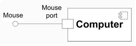UML 2.0 ,圆球(ball)图示(icon)表提供接口;凹槽(socket)图标表需求接口。