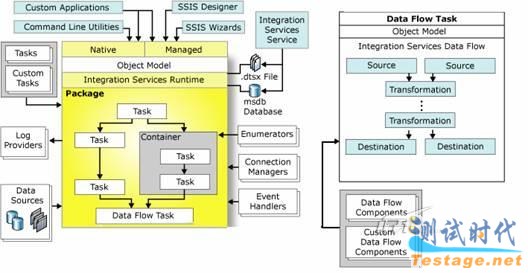 Integration Services object model:通过提供一组API来支持命令行工具、图形化工具和用户二次开发。
