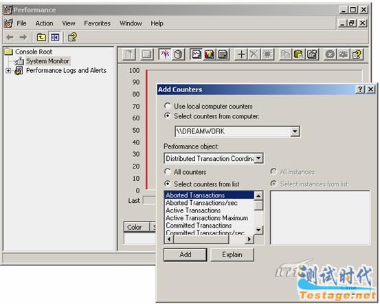对于事务执行情况的监控可以采用WMI或者SQL Server 2005集成服务的Log Provider机制完成。不过笔者因为以往一直在用COM+开发,因此更习惯于用Component Service的DTC浏览器察或者是Performance Monitor查看DTC的执行情况。