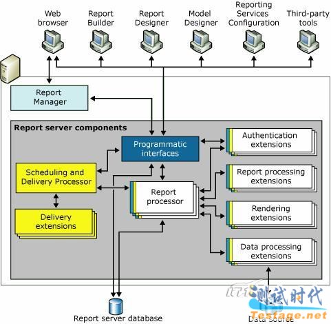上图是报表服务的整体架构,这其中,报表服务特别强调了扩展机制,主要包括如下4个方面。