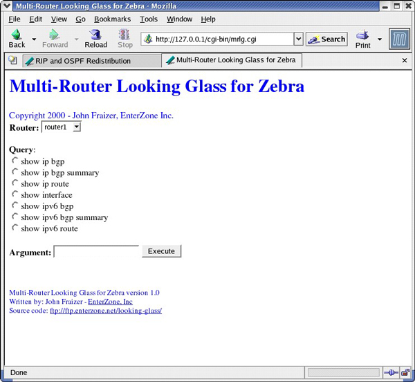 为了访问 MRLG,将浏览器定向到 http://127.0.0.1/cgi-bin/mrlg.cgi。