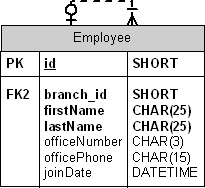 你可能已经注意到,Employee表没有定义外键列。这个图仍旧处于“概念设计”阶段——此后,从概念图到物理数据模型之间的转换是必不可少的。大多数工具区分概念和物理数据模型——概念数据模型描述信息的需求,但不关注细节问题,例如索引和强制性的引用完整性。