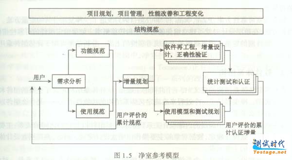 在图最上部的四个管理过程影响着所有其他的过程。在项目计划过程中,小组要根据项目环境裁剪净室过程,并制定和维护软件开发计划。在项目管理过程中,这些计划管理和控制着增量开发和认证。性能改进过程用来不断评估项目性能,明确并切实改进。工程变更过程为所有可能的变化提供配置管理和工程规则。 结构规范过程跨越整个生命周期,定义了体系结构和策略。它将影响从需求到底层设计的许多方面。