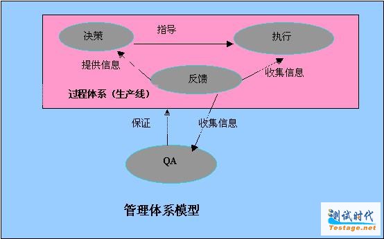 对照上面的管理体系模型,QC进行质量控制,向管理层反馈质量信息;QA则确保QC按照过程进行质量控制活动,按照过程将检查结果向管理层汇报。这就是QA和QC工作的关系。