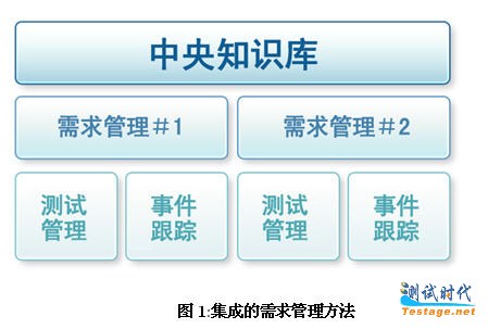 在独立实现以上功能的基础上,需求管理工具还需与ALM中的开发过程进行无缝集成,其中包含事件跟踪、测试管理、以及中央知识库(如图1所示)。