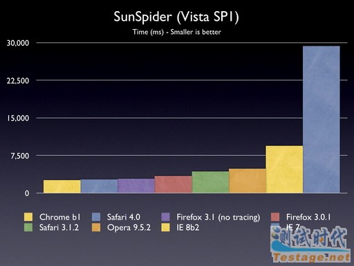 2.SquirrelFish:该引擎用于Safari 4.0。注意:最新的WebKit nightly for Windows在Dromaeo测试中会崩溃,所以暂时就无视它吧。