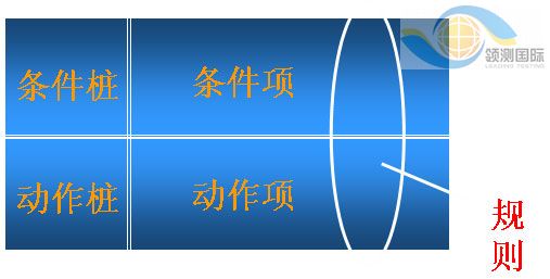 1)规则:任何一个条件组合的特定取值及其相应要执行的操作称为规则。在判定表中贯穿条件项和动作项的一列就是一条规则。显然,判定表中列出多少组条件取值,也就有多少条规则,既条件项和动作项有多少列。