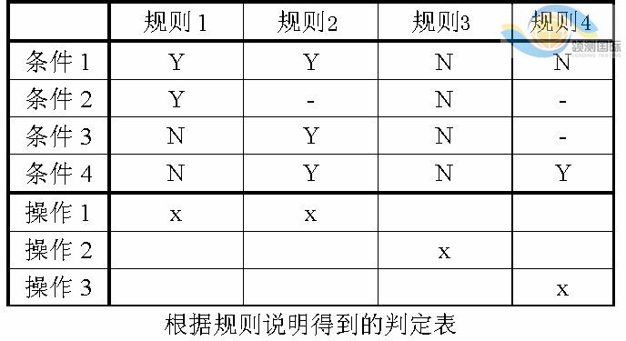 III. 在条件1不满足,而条件4被满足时,要执行操作3。 根据规格说明得到如下判定表: